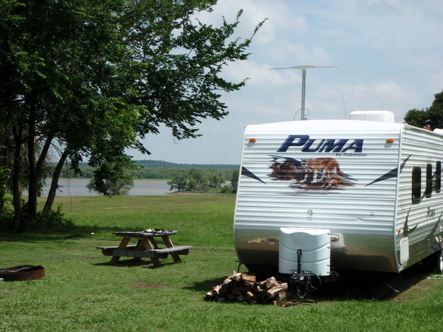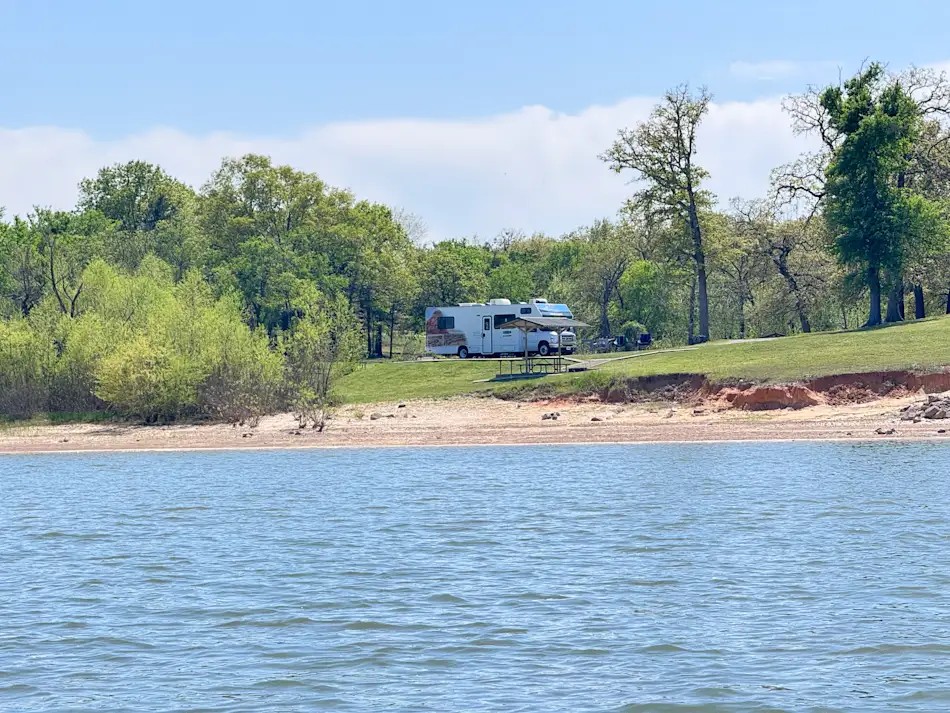 Scenic lakeside camping with wooded shade, trail access, and peaceful open spaces.